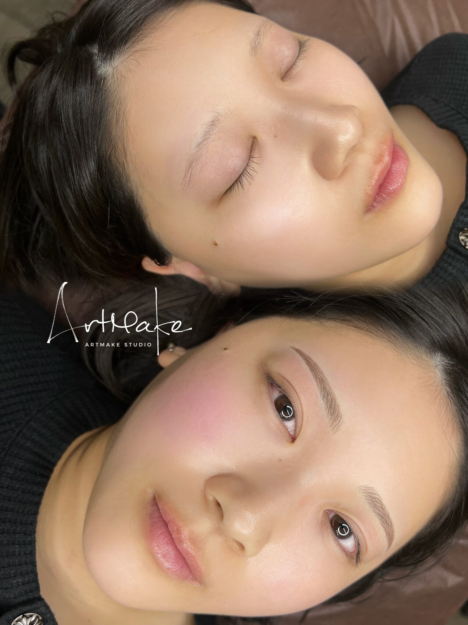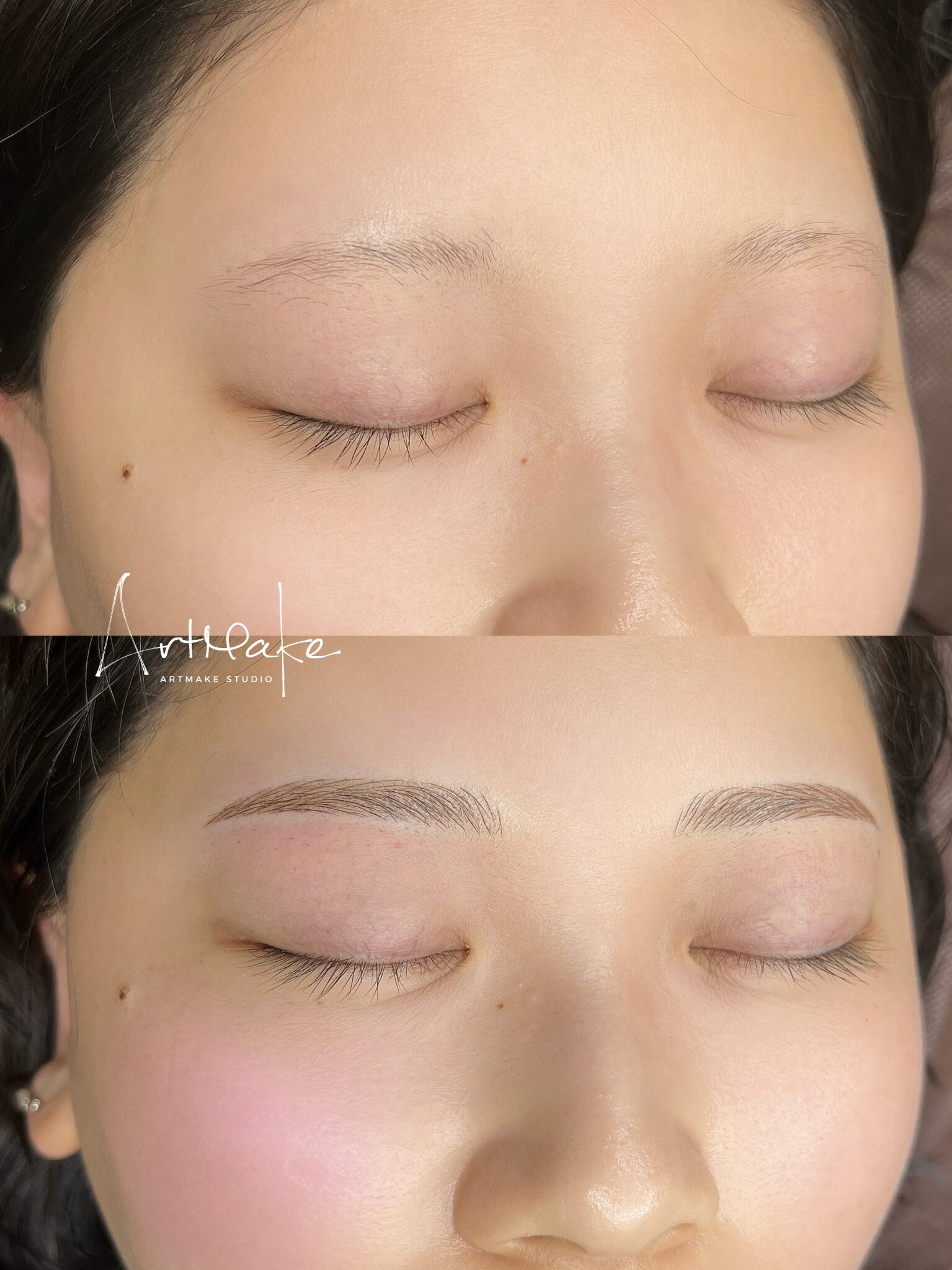 | デザインポイント | アーチよりは平行ぎみなデザインがお好きなお客様。お顔のカーブに沿わせた緩やかなゆるアーチを取り入れた平行眉で、ソフトな印象がよりUPしました。 |